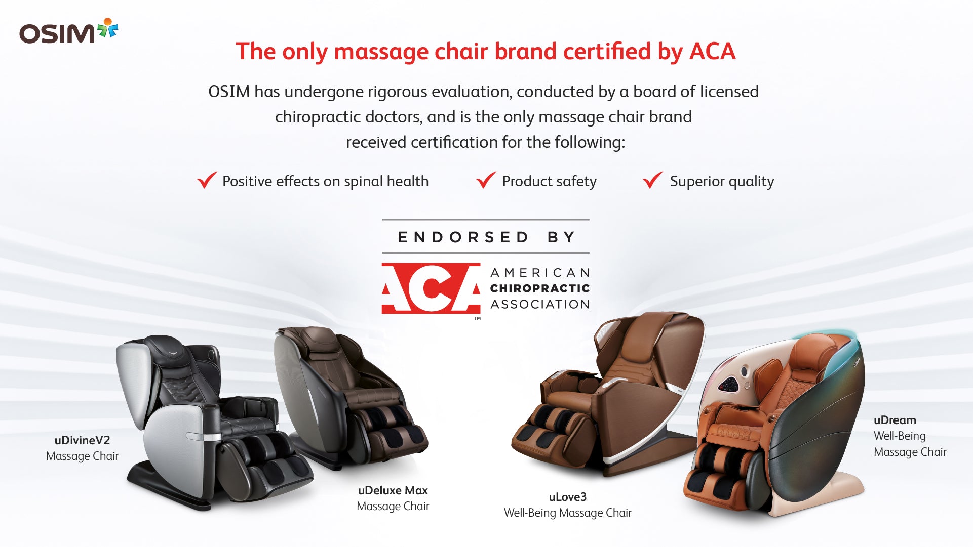 With decades of expertise in massage chair innovation, OSIM is trusted by millions of households around the world for delivering scientifically designed, wellness-enhancing massage solutions. As the only massage chair brand endorsed by the American Chiropractic Association (ACA), OSIM stands apart for its proven positive effects on spinal health, posture support, and long-term well-being. Every OSIM massage program is thoughtfully crafted by a dedicated team of Japanese Chiropractors and Massage Experts, ensuring each session delivers precise, therapeutic techniques that closely replicate professional hands. Backed by 250+ advanced patented massage and wellness technologies, OSIM continues to lead the industry with cutting-edge engineering, superior comfort, and unmatched performance.