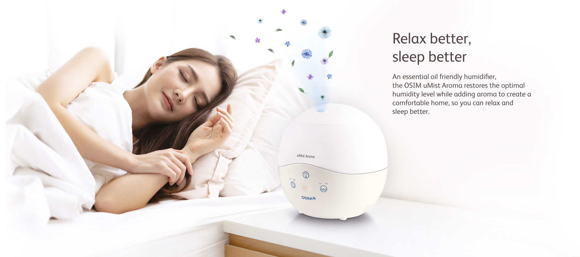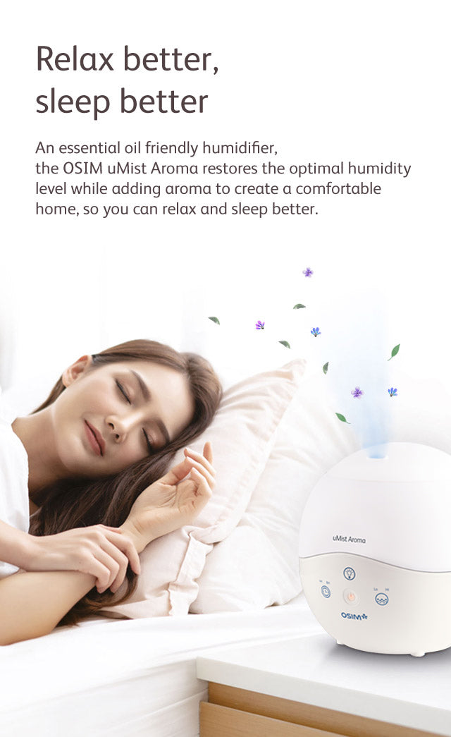 Relax better, Sleep better. OSIM uMist Aroma is an essential oil friendly humidifier that restores the optimal humidity level while adding aroma to create a comfortable home.
