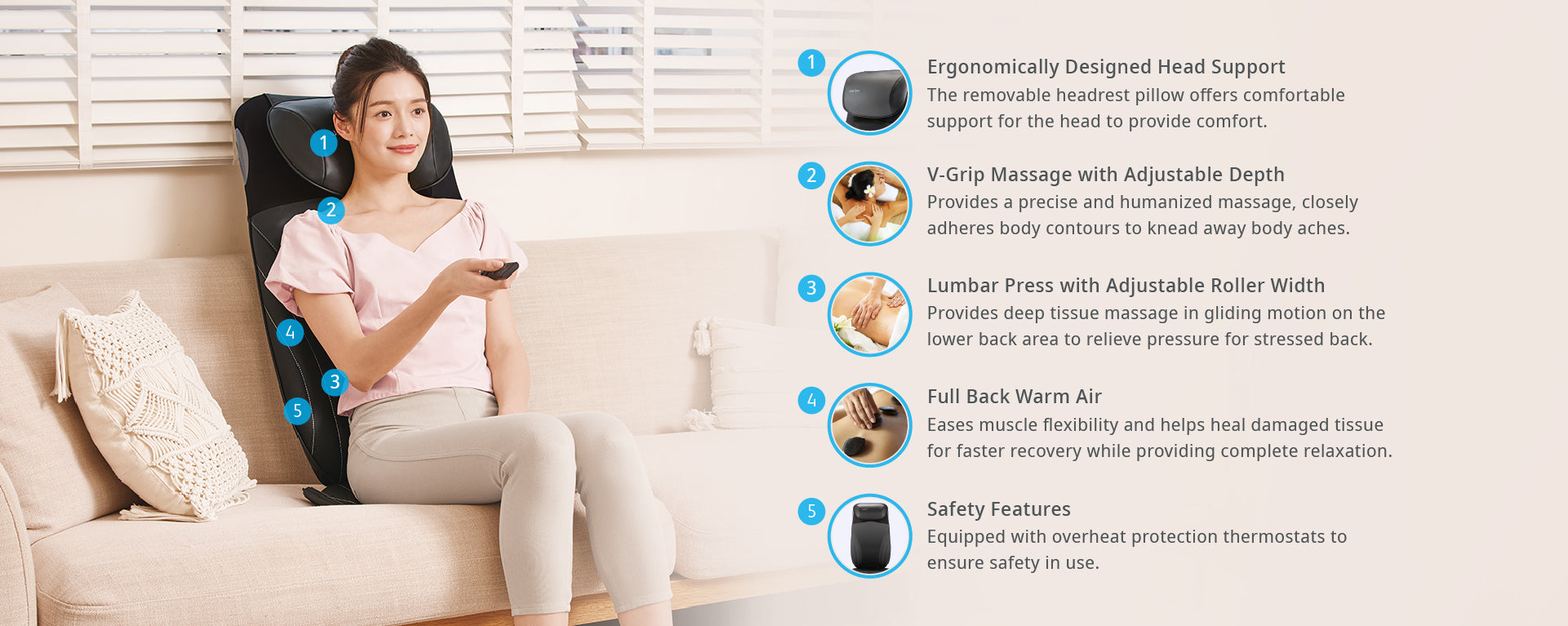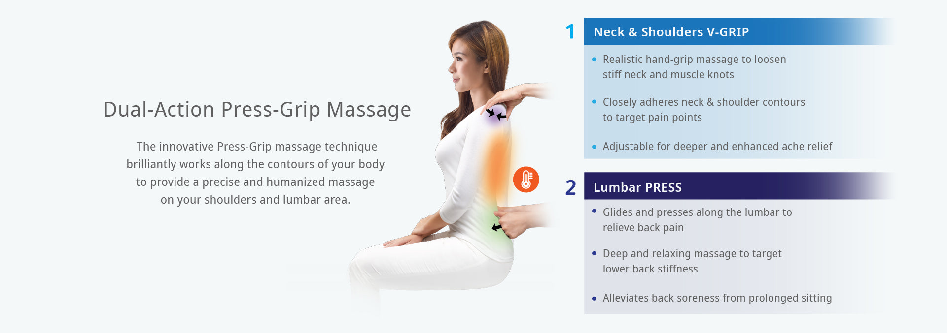 Melt away tension in your neck, shoulders, upper and lower back with the OSIM uJolly Sync, an innovative upper body massager from the portable OSIM Invisible Massage Chair. Featuring OSIM’s signature V-Grip massage and Ashiatsu-inspired back-stepping massage technique, the uJolly Sync grips, kneads, taps, rolls and glides along your entire back to deliver deep relaxation and targeted muscle relief.