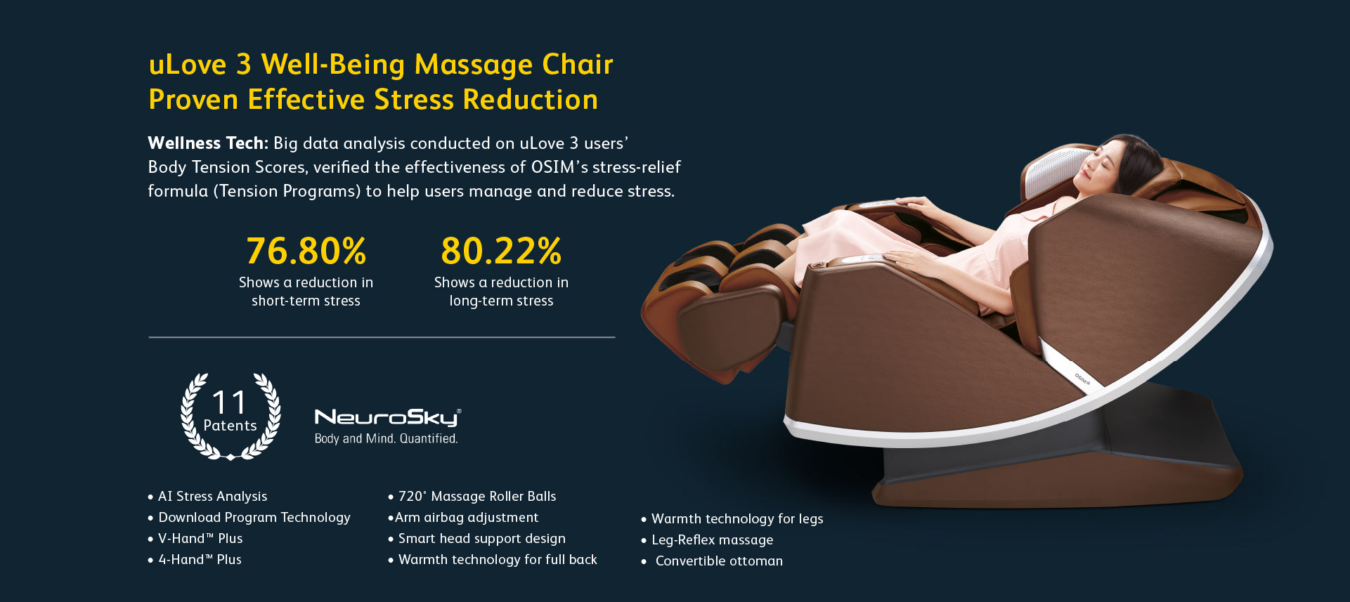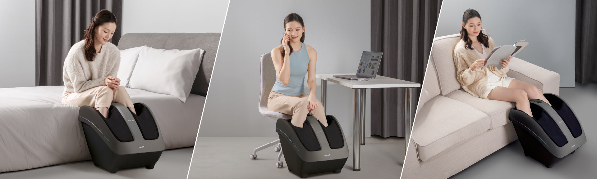 Experience complete leg wellness with the uPhoria Sync Calves & Foot massager, part of the innovative OSIM Invisible Massage Chair. Engineered with CalfGlide™ Tui-Na massage, wrap around squeeze-and-knead massage, vibration massage, foot reflexology, and soothing warmth, the uPhoria Syncs targets key meridian points along the legs to enhance circulation, promote well-being and deliver optimal comfort and rejuvenation for tired legs.